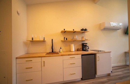 Located in the heart of Newton County. This new (2025) modern cabin is located 3 miles to the Buffalo National River Hasty access, 4 miles to Jasper and short drive to countless trails and waterfalls. Hot tub, fire pit and a private back deck to enjoy after a long day on the river. King bed and a daybed with trundle (two twins) to accommodate up to 4 guests. High speed wi-fi, smart TV and mini projector for outdoor movie night in the woods. Includes counter top ice maker to fill cooler.