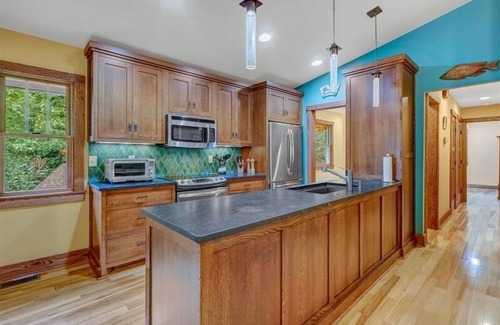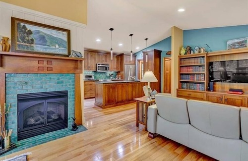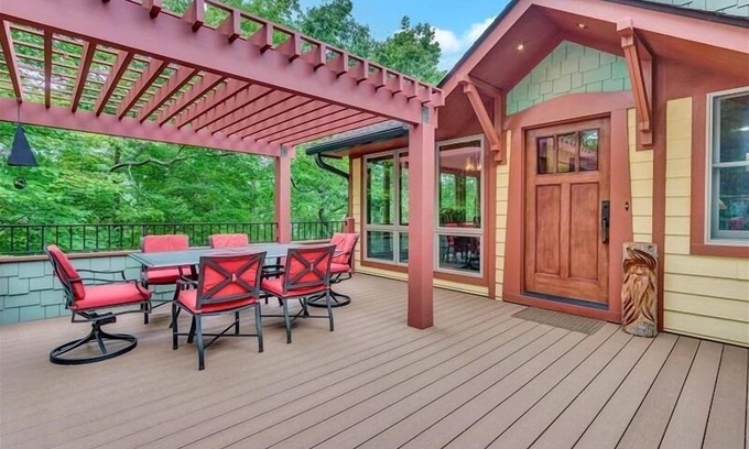 Charlie's Treehouse is a beautiful Craftsman home with a large welcoming front porch overlooking beautiful grounds and a koi pond. It has the right amount of privacy to feel like you are truly in a treehouse, with visions of the lake and dock from the home. It is truly an incredibly unique and inviting property and a wonderful place to stay with your family and friends!