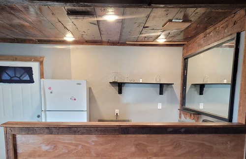 Open living space with a cabin like feel covered parking for your car and little cover patio.