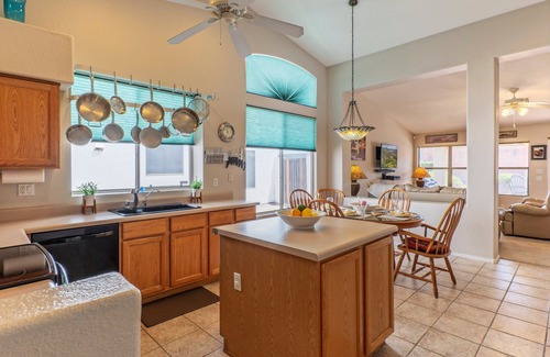 A spacious kitchen is supplied with everything you need to prepare meals during your stay. Both Keurig and drip coffee machines are available. Highchairs can be rented.