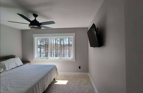 Relax with the whole family at this peaceful and beautiful place to stay that we love to call our home away from home. With 3 king beds and 2 bunk beds, our home can sleep up to 8 adults and 2 kids or up to 6 adults and 4-6 kids comfortably (we also have air mattresses if needed). Outfitted with modern and thoughtful amenities such as a remote operated gas fireplace, well-outfitted chef-ready kitchen (we love to cook), huge master shower with rain-shower, ROKU Streaming HDTVs in every bedroom, fiber high speed internet, and much more. Outside, you have a big rear deck overlooking the cove, community beach where you can walk right into in nicest cove on Lake Rhodhiss, inflatable paddle boards and inflatable dock for lounging in the lake, community pool next door, hiking trails to enjoy, neighborhood playground for kids, and more. We love dogs and welcome well-behaved dogs into our home! This house is an amazing place to make new memories with family and friends, and we look forward to hosting you and your family!
