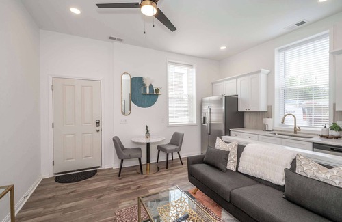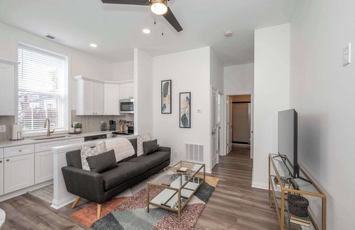 Located in a charming historic building in the heart of Covington is this chic and cozy 1 bedroom apartment, perfect for a couple or trip with a friend.