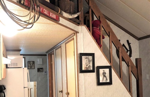 The Cowboy Cabin is small and cozy with 1 bedroom with a queen bed, 1 full bathroom, a mini loft with a queen size bed and full size sofa sleeper in the living area. This is not a large home! The full kitchen has a refrigerator/freezer, stove, oven & microwave and dual coffee brewer (k-cups & 12 cup/pot). The cabin has two smart TV's (one in the bedroom and one in the living area) with all major streaming services available for you to log in to, YouTubeTV is included!
