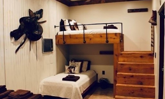 If peace and solitude is what you’re looking for, you’ve found it! Located at the end of a secluded country road, Rockin’ Star Ranch is a luxurious getaway where time seems to stand still. RSR is about escaping urban life to re-connect with family, friends and all that nature has to offer. This VRBO listing is actually 1 of 10 different listings located on the ranch (sleeps 50+ adults) Cowboy corral 2 can be booked under this listing or the entire ranch can be booked under its own Rockin Star ranch listing. Cowboy corral 2 is located in our rodeo arena and is within 20 feet of our horse stalls. Horses are stalled near the rooms on occasion and its a great experience for animal lovers! Very peaceful and quiet. Guests share a bathroom, kitchen area, and laundry room. Guests are welcome to use the outdoor bar, the pool, fish in our ponds, observe and maybe even feed the animals, explore our property, and tour our event venue. Our amenities include an outdoor kitchen, pool, large pastures, tire swings, courtyards, cabins, fishing ponds (catch and release), the woods, and a game room which is located in the garage of the main house. Game room has ping pong, darts, horse shoes, corn hole and a telescope! Interested in horseback riding? A hayride? Maybe want to experience a day in the life of a cowboy? Ask us about booking your experience today!