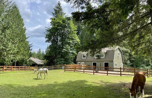 Barn home sits above 2 horse stalls, with 2 very friendly horses that graze the pasture. So you will hear general horse sounds.