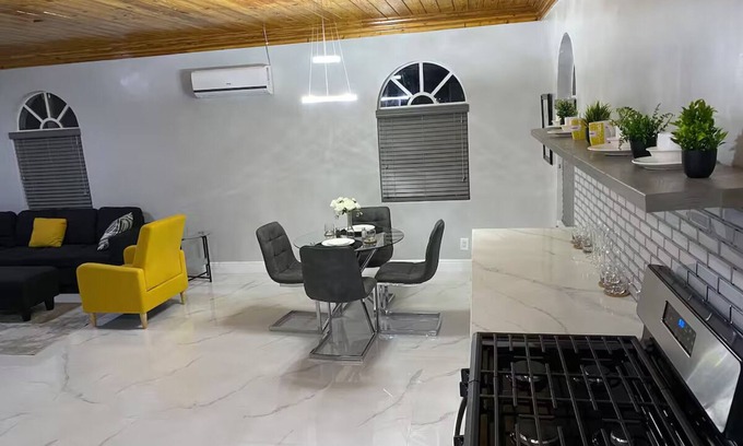 Unwind in Freeport at this lovely apartment. This tranquil space features 1 cozy bedroom with a queen bed, a nice living room with a sofa bed, and a gorgeous bathroom with a shower. Enjoy the convenience of WiFi, a washing machine, AC, iron, and a hair dryer during your stay. Whether you're here for a relaxing getaway or exploring the city, this charming apartment is the perfect home base for all guests. We look forward to hosting you at our place.