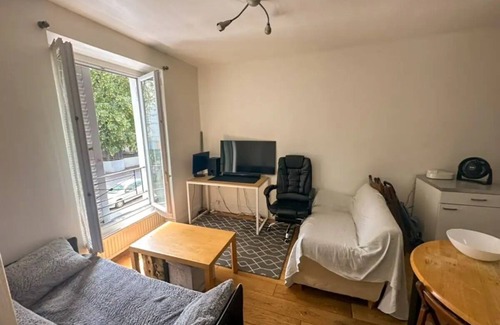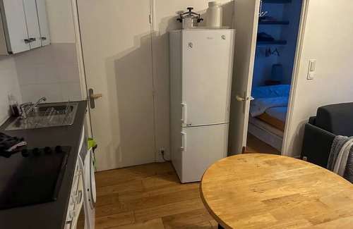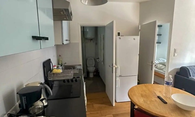 Unwind in Paris at this lovely apartment. This quaint and welcoming property offers a cozy retreat for guests. The bedroom features a comfortable full bed, ensuring a restful night's sleep. The bathroom is equipped with a refreshing shower and a hair dryer for your convenience. In the additional living space, you'll find a sofa bed, perfect for relaxing or accommodating extra guests. Amenities such as heating, a washing machine, WiFi, and an iron are provided to enhance your stay. Immerse yourself in the charm of Paris and create lasting memories. We look forward to welcoming you to our place.