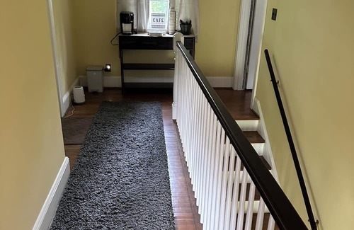 Unwind in Martinsville at this lovely apartment. Nestled in the heart of the city, this welcoming property offers a soothing ambiance that will make guests feel right at home. With its quaint bedroom featuring a comfortable queen bed, you'll have a restful night's sleep. The apartment is equipped with all the essentials, including an iron, heating, a washing machine, WiFi, and AC. The bathroom is conveniently located and provides everything you need. A great place to call homebase while you're away, we hope you enjoy your stay. Office desk for traveling business and medical field employees. Additional rooms if working together and want to share in the same house. The Apartment has one other unit with no shared spaces and a crated dog in that unit but animals are not in any of other apartment or rooms. Shared driveway.