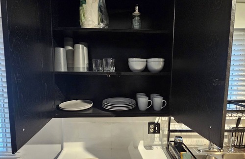 Coffee tea all the utensils you need dishes pans toilet paper paper towel all the linen