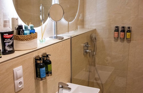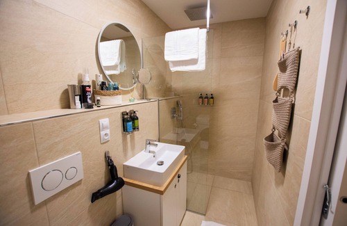 Your Prague adventure begins at this brilliant 1-bedroom sauna apartment. Step inside and be greeted by a gorgeous queen bed, ensuring a comfortable stay for our guests and amazing finnish salt sauna. The nice bathroom features a refreshing shower with L'Occitane amenities and a hair dryer for your convenience. With amenities like SAUNA, AC, WiFi, SMART TV, MINIBAR (extra payment), a hair dryer, a washing machine, heating, and an iron, you'll have everything you need for a pleasant stay. In your price included 2h of sauna per night and also small breakfast. Nespresso coffee and selection of teas will help you to wake up to explore the vibrant city and immerse yourself in its rich culture, history, and delicious cuisine. We are just 14 min with direct BUS 59 from airport and 8 min with METRO A to centre. Nearby u will find also our private wellness with jacuzzi for extra charge. Our staff always help you via whatsapp :)