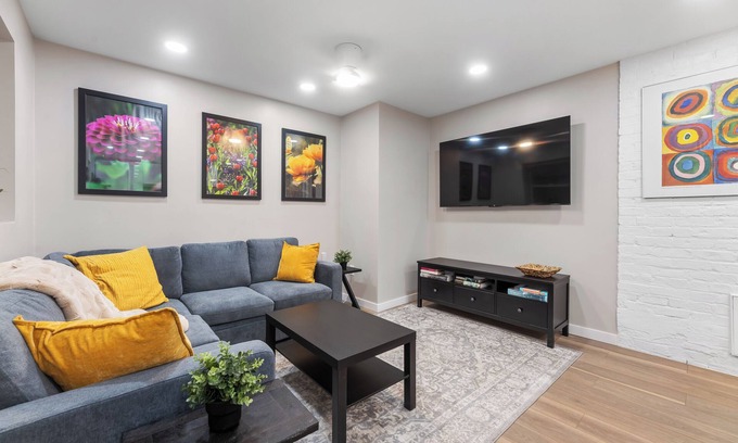 Located in Cincinnati, enjoy what this 1-bedroom apartment has to offer. This delightful space features a serene bedroom with a cozy queen bed, a fabulous living room with two sofa beds, and a bathroom with a relaxing bathtub. Guests can also enjoy amenities like WiFi, AC, and in-unit clothes washer and dryer during their stay. We're happy to assist with any questions while you stay at our apartment.