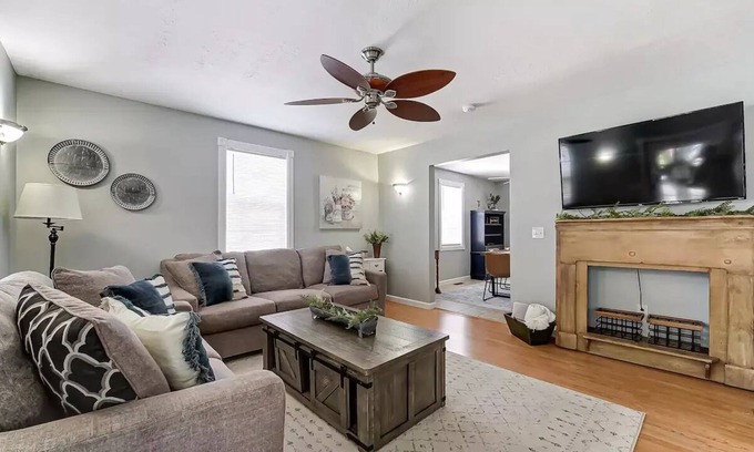 Welcome to our cozy 2BR/1BA in Tipp City! Our fully equipped apartment sleeps up to 6 guests with a king bed, queen bed, and blow-up mattress. Enjoy a covered patio and deck for relaxing outdoors. Just a short walk from downtown, our home is the perfect base for exploring Tipp City's shops, restaurants, and attractions. Book your stay now!