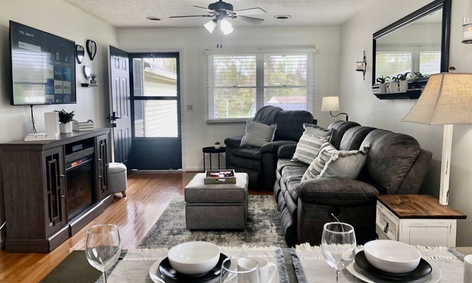 You will be conventionally located to everything when you stay at this cozy centrally-located townhouse in historical Abingdon. It’s approx 5 minutes from the Virginia Creeper Trail, minutes away from Bristol Motor Raceway, Historical Barter Theater, Bristol Caverns, Bike Shops, National Forests, Hiking Trails, Lakes, Streams, Rivers, Parks, Spas, Fine Dining, Shopping and much much more!