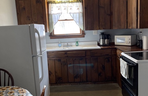 Cozy 2 bedroom cabin with small eat in kitchen. Cabin also has a wood burning stove. Close to snowmobile trails. Also for the non snowmobilers.property sits on 25 acres and river and