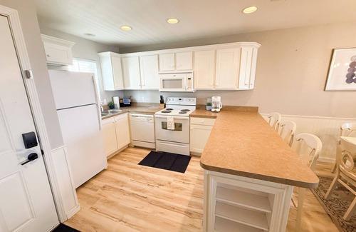 Get ready to relax in this delightful 2-bedroom condo in Kimberling City. With 2 bedrooms, 2 bathrooms and a cozy living room with a sofa bed, this fantastic property is perfect for small groups or families. Enjoy the convenience of amenities like WiFi, a washing machine, and a luxurious soaker bathtub during your stay. One bedroom is setup hotel style and includes a private kitchen space, table and chairs, en suite bathroom and king sized bed. The back patio is private from other patios and offers breathtaking views of Table Rock Lake in every direction! The resort also has several desirable amenities including a huge seasonal pool, brand new pickleball courts with lights for night time play, a picnic area, mini golf, walking trails, shoreline lake access and more! Minutes from Kimberling City and just a short drive to all the local attractions of Branson and Hollister. Book now and enjoy everything this condo has to offer.