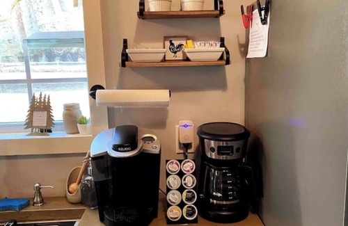 As a traveler, you'll love the cabin's array of amenities, including free WiFi, a washing machine and dryer, and a cozy fireplace to curl up by on chilly evenings. The fully stocked kitchen is equipped with a stove, oven, refrigerator, grill, microwave, dishwasher, coffee maker, and all the dishes and utensils you'll need to prepare delicious meals.