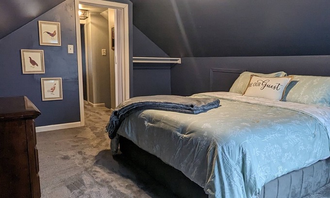 This two bedroom home comes with a coffee nook with different flavors of coffee and tea. The study is right behind the kitchen which is a great place to enjoy that coffee or tea with a great book. The living room is very comfy with a sectional that has plenty of space to enjoy the 75 in tv. The stairs are narrow and tight so there is a hand railing to use if needed. We are a couple minutes away from City of Hope, Six Flags Great America, Gurnee Mills, Great Wolf Lodge, and the beach. There is also a Target and Starbucks down the road, what more can you ask for! The stairs to the bedrooms are steep and narrow. You have full access to the home please enjoy!