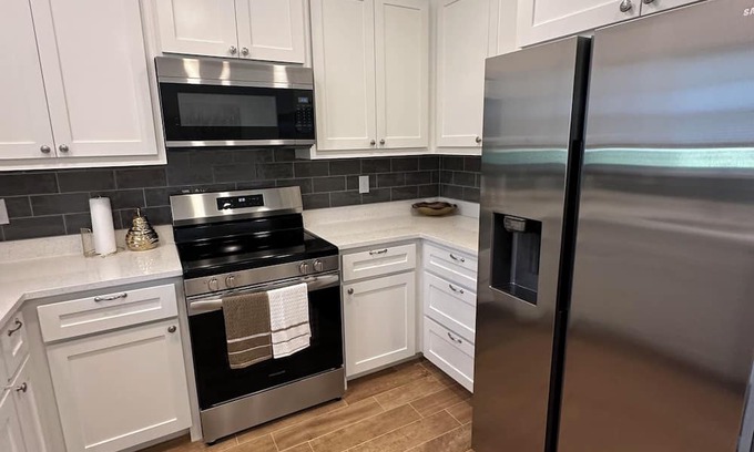 Welcome to your home away from home! This stylish and comfy two-bedroom, one-bathroom retreat offers the perfect blend of modern design and cozy comfort. In a peaceful neighborhood, our home is ideal for both relaxing getaways and exciting city explorations.