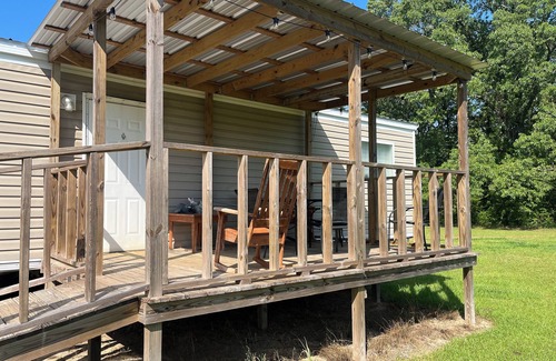 Your Peaceful Country Retreat. Escape to the tranquility of the countryside in our charming mobile home, featuring two delightful bedrooms — one with a king bed and the other with a queen. This cozy retreat offers all the comforts of home, including a washer and dryer, reliable WiFi, fully stocked kitchen and a comfortable heating and air conditioning system. With two full bathrooms, each equipped with both a shower and a bathtub, your stay will be both relaxing and convenient. Start your mornings with a cup of coffee on the back deck, take in the peaceful surroundings, or fire up the grill for an evening meal. Enjoy frequent visits from local wildlife — it's not uncommon to see deer grazing in the nearby fields and backyard. Although you’ll feel tucked away in the serenity of the countryside, you’re just a short drive from town: only 20 minutes to Saraland, 30 minutes to Mobile, and just a few miles off Hwy 43 and Celeste Rd. The location is ideal for industrial and chemical plant workers looking for a comfortable and convenient place to stay while working in the area. You’ll also find grocery stores, restaurants, and the new Saraland Sports Complex close by. We take pride in offering a clean, well-maintained, and welcoming space for all our guests. We look forward to hosting you at our peaceful country retreat!