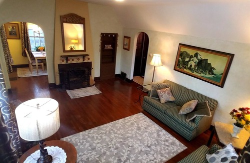 An urban cottage. It's not ultra-modern, it's grandma's place updated. Clean and correct. Hulu and Amazon Prime on the digital TVs in the bedrooms. USB charging stations in both bedrooms. Fireplace in the living room, but no TV there, it's a living room :-)