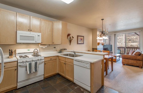 This unit includes a full kitchen with all the amenities expected in a home away from home, including plenty of pots and pans and all the most used small appliances. The gas fireplace provides for a cozy atmosphere as you take in the mountain views from the living area. Or enjoy a more expansive view outside on your private deck! There is also a washer and dryer in the unit so you can pack light and leave room in your suitcase for purchases from the Park City (Tanger) Outlets right across the street.