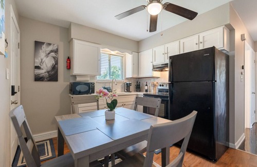 The two bedrooms feature comfortable beds and ample storage space, ensuring a restful night's sleep for everyone. The bathroom is clean and stocked with essential starter supplies for your convenience. There is a full private basement with a washer and dryer for you to keep your clothing fresh and clean.