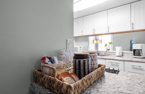 Inside, you'll find a cozy living area with comfortable seating, perfect for relaxing after a day of exploring. The kitchen is well-appointed with modern appliances, ready for you to prepare your favorite meals. The bedrooms are inviting, with soft bedding and space with a desk to get some work done.