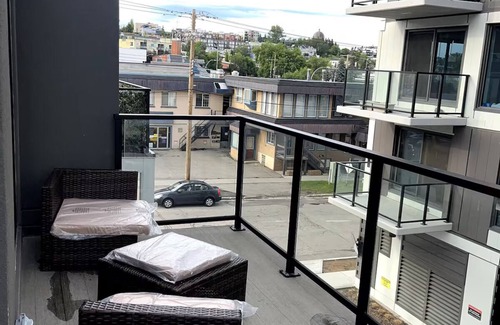 Step out onto your private balcony for fresh air, a morning coffee, or a quiet moment to unwind. The kitchen comes fully equipped with cookware, dishes, and essentials to prepare your favorite meals. There's also in-suite laundry for your convenience during longer stays.