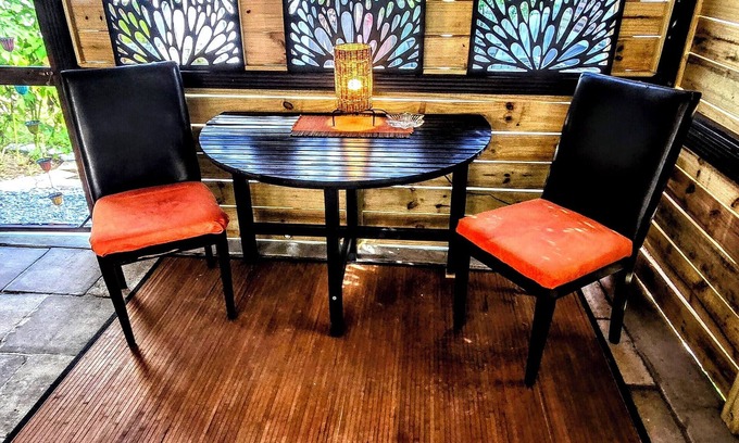 Outside, you’ll find 4 unique hangout spots, including a grilling/cooking area, a private outdoor shower, and lush gardens full of butterflies and pollinators. For water lovers, a inflatable paddle board is provided (use at your own risk)—perfect for a float down the Weeki Wachee River.