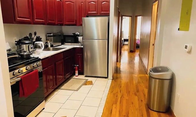 Consider this townhome your home away from home while you visit to NYC. This lovely property features 2 bedrooms with a king and queen bed, 2 bathrooms with a bathtub and bidet, and essential amenities like AC, heating, WiFi, and an iron. Relax in the comfort of this beautiful space after a day of exploring the city. We look forward to hosting you at our place.
