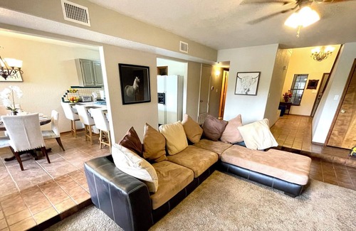 Unwind in Carlsbad at this lovely condo. With 3 bedrooms, including 2 king beds and 1 queen bed, our enchanting property offers the perfect space for guests to relax and recharge. The 2 bathrooms are equipped with all the necessary amenities, including a hair dryer. You'll find everything you need for a fabulous stay, from AC and a washing machine to WiFi and heating. Whether you're exploring the city or simply enjoying some downtime, it's easy to see why you'll be able to unwind at our place.