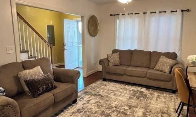 Enjoy a stylish stay at this centrally located gem in the heart of Norfolk! Perfect for families, this exquisite 3-bedroom, 2-bath home sits on a quiet street while keeping you close to everything—downtown Norfolk, Ghent, Waterside, Virginia Beach, Portsmouth, and more. Relax on the cute upstairs balcony or unwind on the front and back porches. Amenities include a washer, dryer, Wi-Fi, a 55" living room TV, and 43" Google TVs in all bedrooms. Exterior cameras and ADT security ensure peace of mind. Ideal for comfort and convenience. Xmas tree present for holiday spirit.