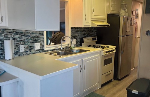 With all the comforts of home, there is whole house Wi-Fi. You can log directly into your favorite video apps with the 55" Fire TV located in the bright and beachy living area. We offer a fully stocked kitchen with microwave, gas stove/oven, toaster, blender & coffee maker. The 2nd bedroom has a Roku TV to enjoy. There is a gas grill outside to enjoy as well. The home has central heat & a/c and parking available for 2 cars.