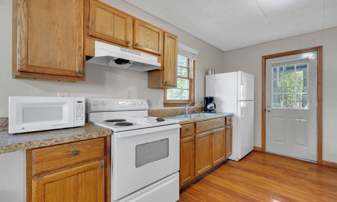 This unit, situated in a heavily wooded and shaded area, provides a tranquil escape. It features a fully equipped kitchen, a charcoal grill, and a picnic table for outdoor dining. Each of the three private bedrooms is furnished with a cozy queen bed, catering to comfort and relaxation. Plus, it's pet-friendly, ensuring that every member of the family can enjoy the getaway.