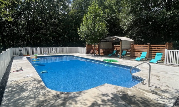 Located in the center of Swiftwater is this charming three-bedroom getaway. Nestled just a 5-minute drive from the exciting Mount Airy Casino, a 10-minute drive from the renowned Kalahari water park, and a 15-minute drive from the renowned Camelback Ski Area, this property offers the perfect home base for your Pocono Mountains getaway. Unwind in the comfort of your own heated private pool, or enjoy the convenience of free WiFi, a washing machine and dryer, and a smart TV. The fully stocked kitchen, complete with a stove, oven, refrigerator, grill, and more, makes it easy to prepare delicious meals, while the outdoor furniture provides a lovely setting for alfresco dining. With 2 bathrooms, towels, basic soaps, a hair dryer, and an iron and board, you'll have all the essentials you need for a comfortable stay. And for the little ones, there are books and games to keep them entertained. Whether you're seeking adventure or relaxation, this vacation home has everything you need for an unforgettable Pocono Mountains experience.