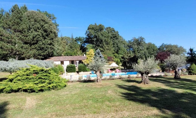 Beautiful cozy 3 bedroom villa in a park setting with a 11x6 refreshing swimming pool steps away to the village of Lacapelle Biron. Near by you may visit the Dordogne region with medieval villages, markets, concerts, festivals, food festivals, quaint shops, and many castles. All amenities and restaurants in the quaint village of Lacapelle Biron are less than a 15 minute walk.