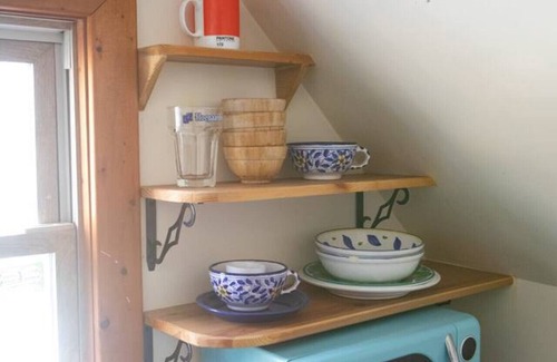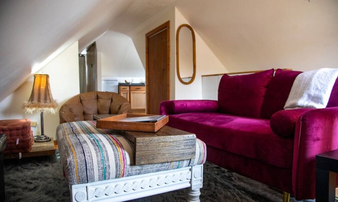 This stay resembles tiny house living just enough of everything you need in a small space. This 1900`s home / unit was recently renovated by the artist / owner to resemble a modern rustic charm with a bohemian touch. The bed was hand crafted using rare / extinct American Chestnut. Bathroom vanity was also handmade. This unique place has a style all its own in that the ceilings are triangular just make sure to watch your head. Enjoy the morning sun and the view from this plush living space.
