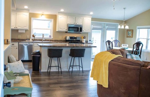 The ranch-style home is located in a quiet neighborhood and offers an open-concept living area and a large kitchen and island, perfect for preparing meals to be enjoyed while sitting in the dining room overlooking the fenced in backyard. This 3 bedroom and 1.5 bath home offers plenty of sleeping areas in the Master (King bed), and two guest bedrooms (one queen bed and one twin bed) to comfortably sleep 5 people. Basement had washer and dryer for your laundry needs.