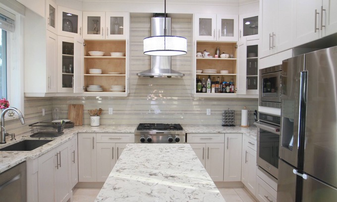 2. Kitchen and Dining: Adjacent to the living room is a cozy dining area, ideal for family meals or casual gatherings, offering a view of the back patio through a glass door. The kitchen, adjoining to the dining room, is modern and efficiently designed, featuring contemporary appliances, ample cabinet space, and durable countertops suitable for cooking and entertaining.
