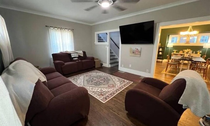 This 1,455 sqf Homestead Hideaway has tons of country farmhouse charm. 3 bedrooms each w/ closet space, spacious bathroom featuring a double vanity sink, freshly refinished original hardwood floors from 1922. WiFi, August locks (keyless entry), security cameras, dazzling natural lighting atop your in-kitchen breakfast nook during a gorgeous sunrise. Cozy living room perfect for snuggling up to read a book, or watching your favorite show!