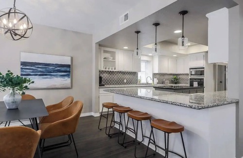 This 2,200 sq.ft. spacious home has two living rooms, two dining rooms, an open kitchen with bar top for entertaining that looks into the living room and outside into the yard. The entire house has been thoughtfully equipped with all of the amenities you will need during your visit, such as a brand new washer & dryer, Nest thermostats and high speed internet for work/school from home capabilities.