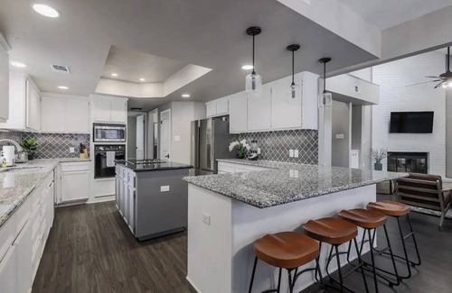 This stunning downtown Round Rock home was absolutely made for entertaining with its open concept kitchen overlooking the living room and backyard. It's the ideal home for family travelers and friendly gatherings. A mix of charming and luxurious details throughout.