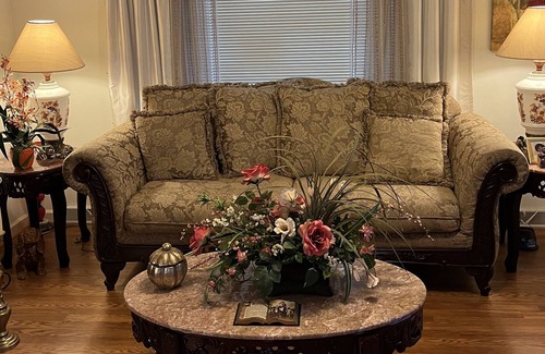Welcome to your newly remodeled 2-story home in a private and quiet neighborhood. New photos will be uploaded soon. This beautiful house features four bedrooms and 2.5 bathrooms, with the master bedroom having a queen-sized bed, private bathroom, TV, walk-in closet, and dresser. The two guest bedrooms also have queen-sized beds, TVs, regular closets, and dressers. One of the guest bedrooms even has a desk and chair for your convenience. The basement has a queen-sized bed, TV, couch, and table, perfect for a game room or additional sleeping space.