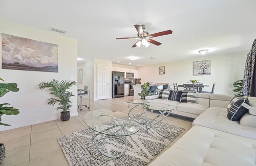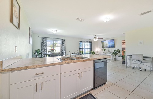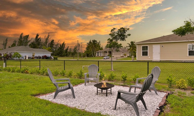 Enjoy beautiful weather year-round from this spacious and stylish 4-bedroom, 2-bath house in Cape Coral. The property boasts a well-equipped kitchen and a gas grill. After the day's adventures head back to this well-appointed home, and enjoy the back yard with a grill and a fire pit. No matter your chosen adventure, this bungalow is sure to be at the center of all of your memories!
