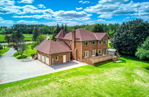 Cozy Deer Creek Golf Course6 Bedroom Estate Home on 1.5 Acres land to peacefully enjoy your stay. A large patio with a beautifully landscaped lawn, and an enjoyable stream running through the back of the property for your outdoor activities. Amazing master BR with luxury king bed and private bathroom. Five more BR with queen bed. Two more full W/R and a powder room. Fully equipped kitchen with lots of counter space. The home is located in a convenient location of Ajax for all your shopping needs.
