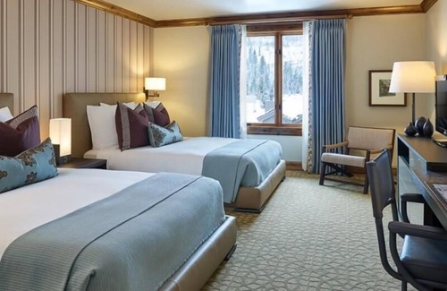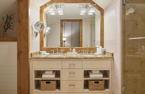Furnished to be a refreshing new take on classic alpine décor, the two-bedroom residence features a large living room with queen sofa sleeper, fully equipped gourmet kitchen, dining area and balcony. Each suite consists of a master bedroom with one king or two queen beds and guest room with one king or two queen beds and two bathrooms. Views may range from overlooking the pool area, views of the mountains, the surrounding valley or Vail Village. Each suite includes a welcome amenity and complimentary refreshments. Units are fitted with premium cotton linens and duvets, a gas fireplace, washer/dryer and an entertainment center with flat panel HDTV, a DVD player and iPod® docking station. In the bath are natural stone countertops and flooring, upscale amenities and plush bathrobes and slippers and custom branded bath products. All rooms include air conditioning, mini-fridge, Nespresso® coffee service, cordless phone, in-room safe and humidifier.