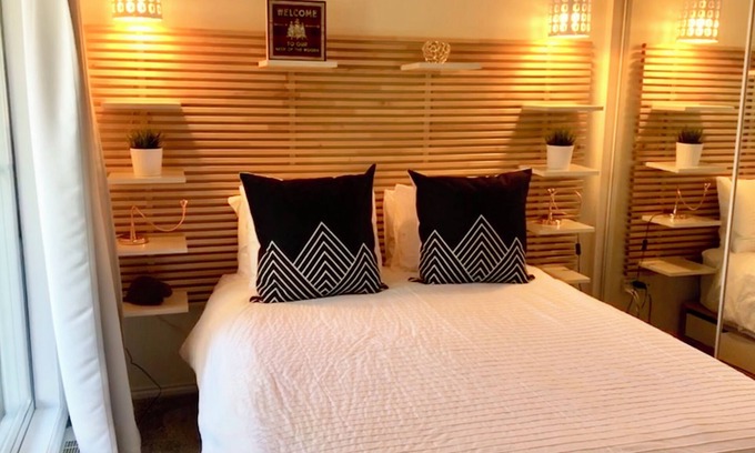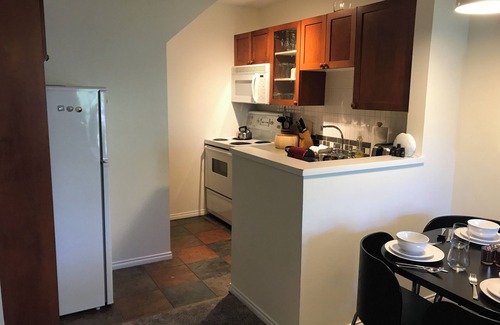 Our space is modern, bright and fresh. There's a stocked kitchen and private BBQ for your stay. The main bedroom has a queen bed and air conditioning unit, while the section in the living room coverts to a queen bed.