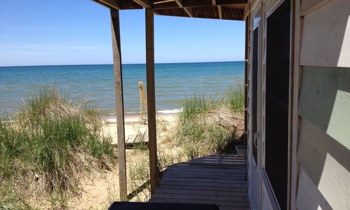 Our Duneland Rentals cottages are located right on the beach in the Indiana Dunes. This delightfully spacious Studio is nestled in the Indiana Dunes and just steps away from magnificent Lake Michigan. The only thing between you and the lake is a lovely sandy beach. There is sleeping for 3. Ample seating in the living area includes a loveseat and a comfortable daybed. The dining room table can be expanded to meet you dining needs or the leaves can be easily hidden away for a more intimate dining experience. The kitchen is spacious and fully equipped with a full size refrigerator, stove/oven, microwave, toaster oven and 12 cup coffee maker. There are bar stools at the kitchen counter for casual dining or socializing with the chef. All linens (bath towels, hand towels, wash clothes and dish towels) are provided. This is the lower level of a 2 story guest house with a private entrance and no shared spaces. We have 350' of private beach for the exclusive use of our guests. Should you want to venture beyond the beach numerous nearby attractions include hiking, biking, dining, shopping, museums, art galleries, an arboretum, golfing, waterpark, farmers markets, live theatre, movie theatres,skating, bowling and much more.