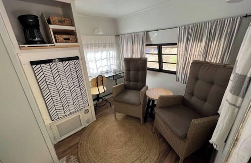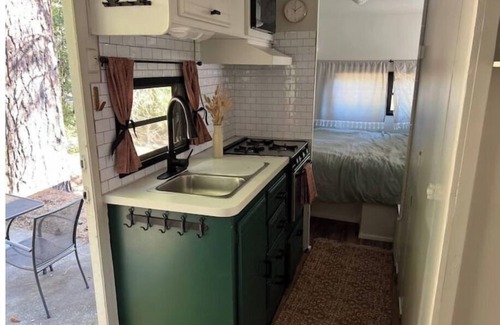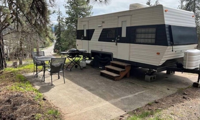 Get cozy in this cute camper, with a rockin' AC, only 5 minutes from downtown White Salmon. You'll live tiny home style, in a neighborhood surrounded by trees.