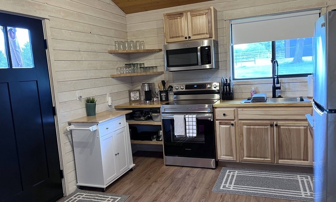 Nestled at the foot of the mountains, this newly updated tiny home captures a true Montana experience. At 600-square feet, this tiny home offers a serene and peaceful space for couples or a small group to enjoy a retreat in the mountains. While we love kids, this home is probably not the best suited for small children due to its size and the location of heaters/vents. A deck, barbecue, full kitchen, laundry and outdoor/indoor seating areas. Close to coffee shops, breweries, restaurants, hiking/biking trails, the Bitterroot river and more outdoor nature than you could ever imagine, sit and enjoy the scenery.